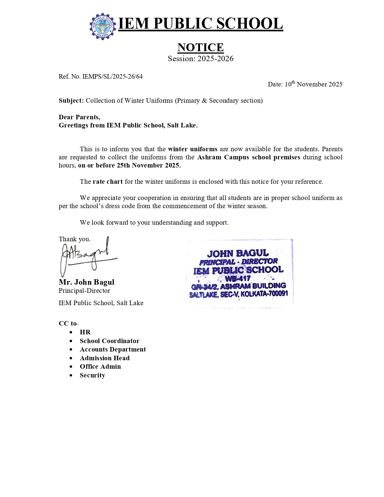 November 22 Notice No. 57 – Annual Concert, Prize Distribution Ceremony, Annual Sports & Picnic Participation Fee (GE)