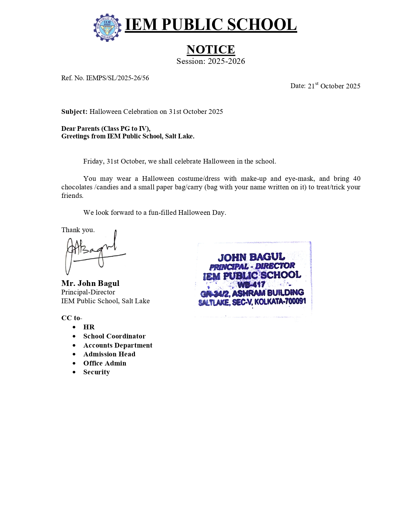 Notice No. 56 – Halloween Celebration on 31st October 2025 (GE)