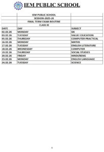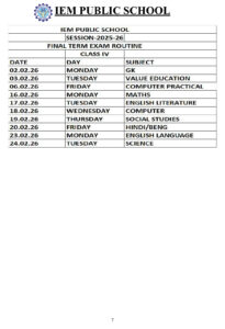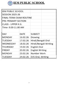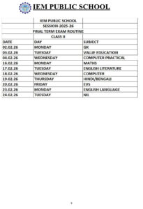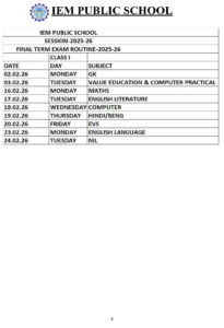 Final Exam Time Table 2025 – 2026 (LKG to Class IV)