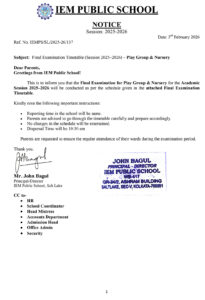 Final Exam Time Table 2025 – 2026 (Play Group & Nursery)